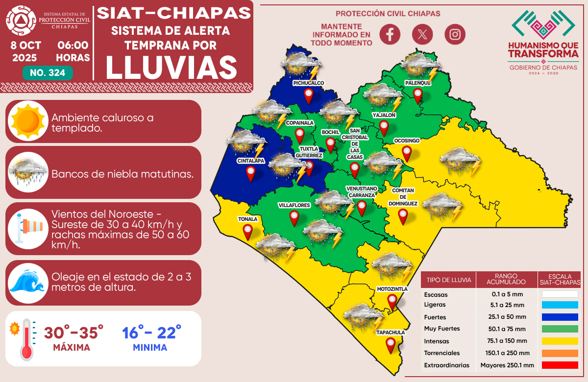 Sistema Estatal de Protección Civil de Chiapas activa protocolos preventivos ante el Frente Frío Número 4 2025-09-28